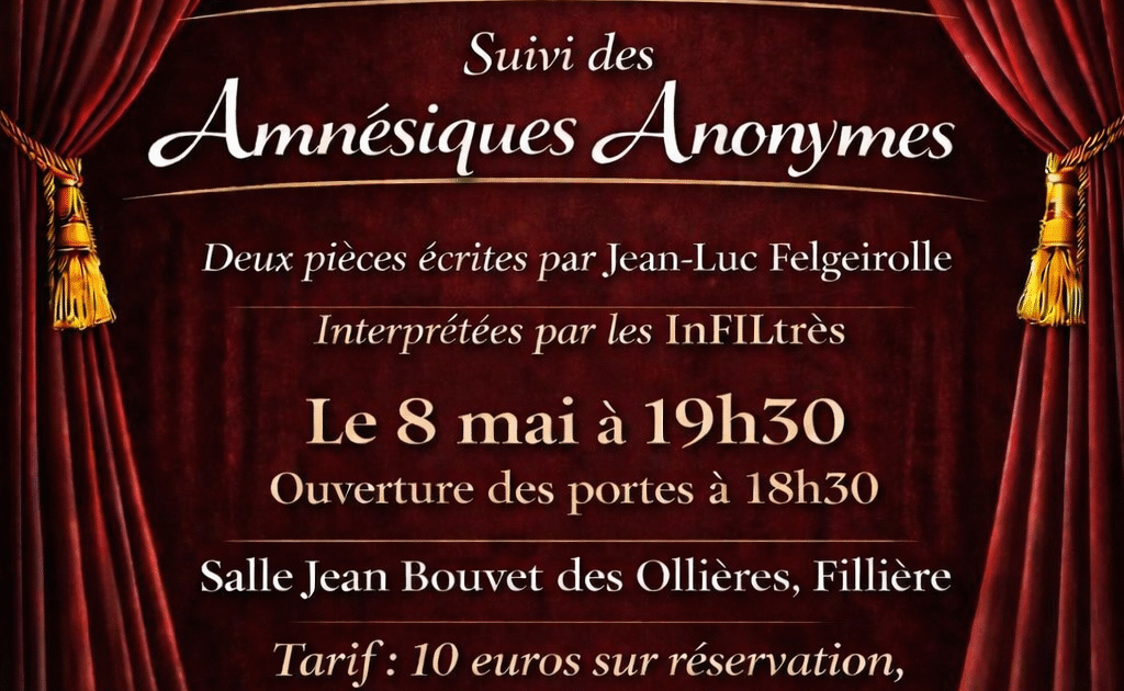L’UNC Parmelan organise le 8 mai prochain, une soirée théâtre, à la salle Jean Bouvet des Ollières (Fillière). 2 pièces pleines d’humour, de bonne humeur pour passer une belle soirée.